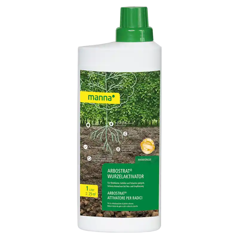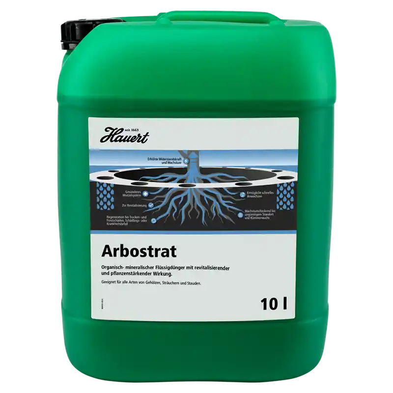 Arbostrat ist ein flüssiger Wurzelaktivator auf organischer Basis, der speziell zur Düngung und Stärkung von Bäumen und Sträuchern entwickelt wurde. Die ausgewogene Zusammensetzung aus Spurenelementen, Vitaminen, Rohproteinen und Pflanzenhormonen fördert gezielt die Bildung neuer Feinwurzeln, stärkt die natürliche Abwehr und unterstützt die Regeneration geschädigter Gehölze.